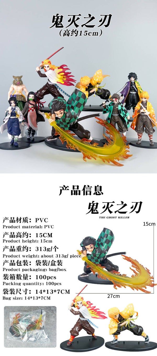 Bring your favorite characters from the hit anime Demon Slayerto life with our premium collection of PVC action figures! This set features highly detailed and beautifully crafted figurines of the anime's most iconic characters, including Tanjiro Kamado, Nezuko Kamado, Kyojuro Rengoku, Giyu Tomioka, and more. Each figure stands approximately 15cm tall, making them the perfect size for display on your desk, shelf, or in a collector's cabinet.